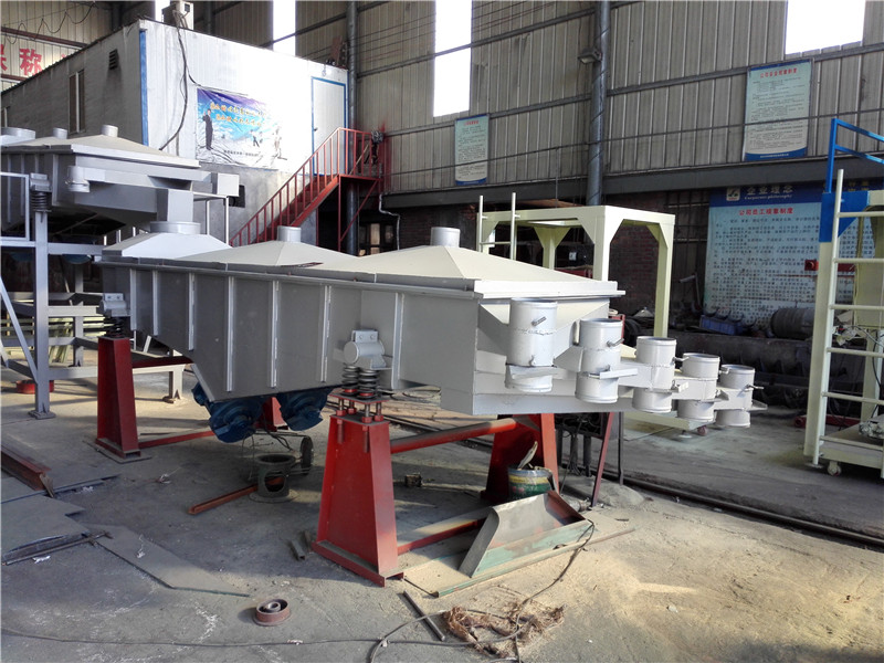 直線振動篩采用雙振動電機驅動,當兩臺振動電機做同步、反向旋轉時,其偏心塊所產生的激振力在平行于電機軸線的方向相互抵消,在垂直于電機軸的方向疊為一合力,因此篩機的運動軌跡為一直線。其兩電機軸相對篩面有一傾角,在激振力和物料自重力的合力作用下,物料在篩面上被拋起跳躍式向前作直線運動,從而達到對物料進行篩選和分級的目的。可用于流水線中實現自動化作業。具有能耗低、效率高、結構簡單、易維修、全封閉結構無粉塵溢散的特點。篩分目數400目,可篩分出7種不同粒度的物料。