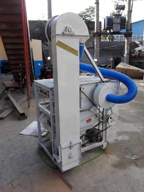 本機(jī)為三層篩網(wǎng),先經(jīng)過進(jìn)料口處風(fēng)機(jī)抽風(fēng),直接抽走重量輕的雜葉或麥秸稈,上層篩的初次篩分再把大雜清理過,好的糧食(種子)直接落到下層篩網(wǎng)上,下層篩網(wǎng)會把糧食(種子)中的小雜.小石子.有缺陷的糧食(種子)直接漏掉,完好的糧食(種子)會從出料口篩分出來。該小型清糧機(jī)解決了揚(yáng)場機(jī)的功能單一,不能有效去除石子.土塊的缺陷,更能為清理、凈選糧食(種子)帶來滿意的效果。該機(jī)有占地小,移動方便,便以維修,除塵除雜效率明顯,能耗低,使用簡便等優(yōu)點(diǎn)。