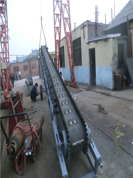 擋邊帶式輸送機其結構是在平行橡膠運輸帶兩側黏上可自由伸縮的橡膠波形式的裙邊,在裙邊之間又粘有一定強度和彈性的橫隔板組成匣型斗,使物料在斗中進行連續輸送。擋邊帶式輸送機可廣泛用于煤炭、糧食、建材、化工、水電、和冶金等部門,在環境濕度為19°-+40°范圍內,輸送堆積比重為0.5-2.5t/m3的各種散裝物料。對于輸送有特殊要求的,如:高溫、酸、堿、油類物質或有機溶劑等成分物料,采用特殊的擋邊輸送帶。