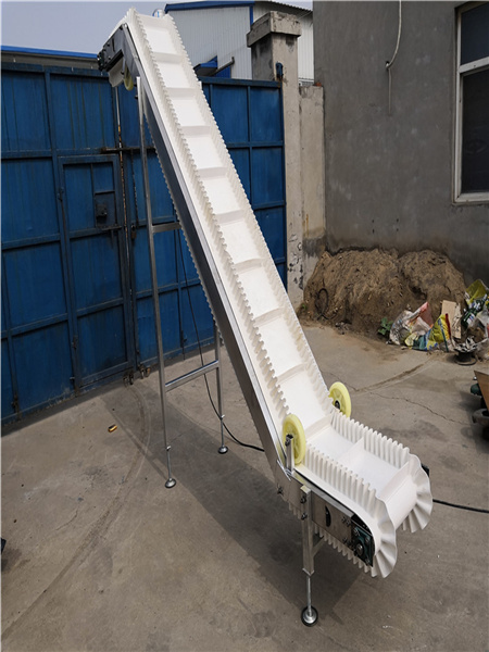 裙邊皮帶輸送機(jī)常用于輸送小型、顆?;蚍勰町a(chǎn)品,裙邊為熱熔在輸送帶兩側(cè)波浪起伏狀的帶狀皮帶護(hù)邊,為防止微小產(chǎn)品從皮帶縫隙掉落到皮帶輸送機(jī)內(nèi)。