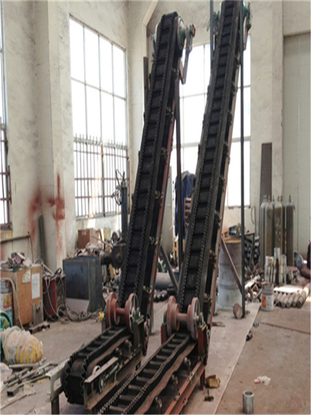 擋邊帶式輸送機其結構是在平行橡膠運輸帶兩側黏上可自由伸縮的橡膠波形式的裙邊,在裙邊之間又粘有一定強度和彈性的橫隔板組成匣型斗,使物料在斗中進行連續輸送。擋邊帶式輸送機可廣泛用于煤炭、糧食、建材、化工、水電、和冶金等部門,在環境濕度為19°-+40°范圍內,輸送堆積比重為0.5-2.5t/m3的各種散裝物料。對于輸送有特殊要求的,如:高溫、酸、堿、油類物質或有機溶劑等成分物料,采用特殊的擋邊輸送帶。