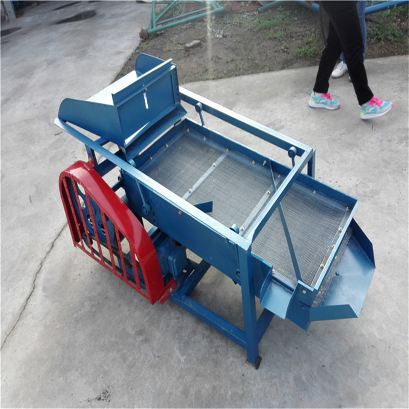 進行初次篩分層篩分,以比較大的網(wǎng)孔,作為大塊雜質(zhì)篩分,如玉米芯,黃豆片,花生皮等等。大的雜質(zhì)會留在層篩網(wǎng)中,通過電機來回篩選抖動,把雜物振到雜物出料口,需要篩分的物料會漏到下層篩網(wǎng)中,進行下一層篩網(wǎng) 層篩網(wǎng),網(wǎng)目比較小,也就是糧食機的小塊雜質(zhì),篩網(wǎng)網(wǎng)孔比需要篩分的物料大。
