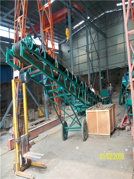 移動式皮帶輸送機,膠帶主要有寬度500、600、650、800mm,1000、1200、1500等特殊規格可以另行設計,皮帶輸送機是一種連續輸送散狀物料或成件物品的運輸設備,具有結構緊湊,工作性能可靠、輸送量大、生產效率高、操作靈便等優點,廣泛運用于港口、碼頭、車站、倉庫、料場、廠礦等地輸送煤炭、砂石、糧食、化工原料、成件物品等。輸送機配有行走輪,可作整機移動,輸送傾角可以根據實際需要調整,大傾角為22度,變幅機構可以手動調整,也可以采用電動執行;根據輸送工藝布置要求,可以單機或多臺組成水平或傾斜的輸送系統。