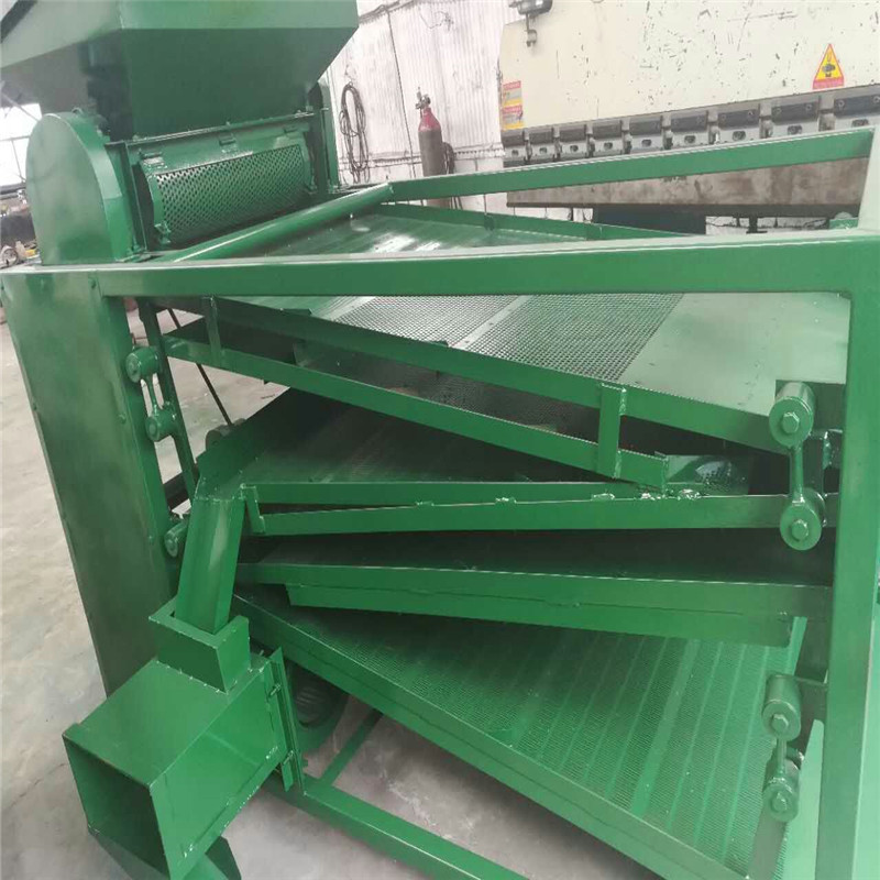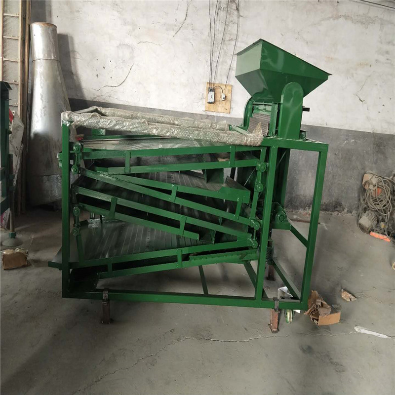 花椒除雜篩是利用打碎分離+篩選的方式進行花椒打把脫粒篩選處理,原枝花椒放進進料斗后把花椒把打下來,花椒籽從殼里打出來,通過下料器落到篩面上篩選,一層篩選出來的梅花椒和大的花椒枝葉----二層是花椒籽,會落到風機口進行二次風選----三層進行復試篩選----四層是成品椒殼,可以直接打包,我們都知道花椒篩分機都是上下篩,下篩篩出來的花椒枝葉,以前十幾個人干的工作,現在只需一人就能完成,篩選凈度高,產量也大。