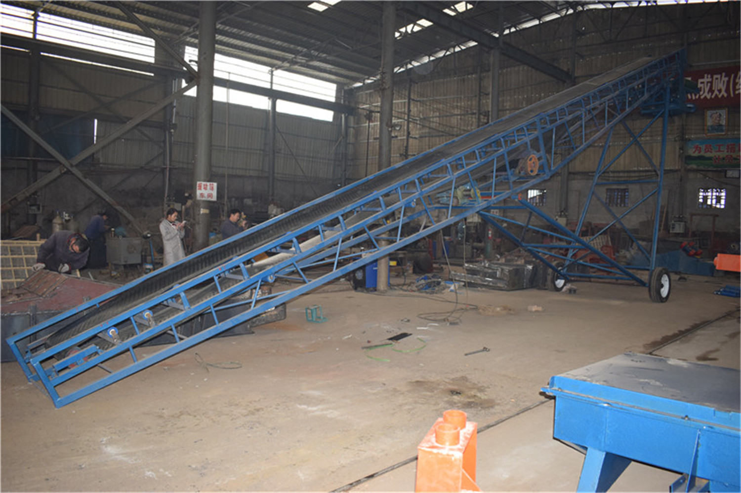 在移動(dòng)式皮帶輸送機(jī)機(jī)架兩旁裝可配有擋管或擋邊,防止糧包在輸送時(shí)掉包,防止糧食撒漏,便于散裝糧食輸送。大、小走輪均采用實(shí)心膠輪或充氣橡膠輪,防止壓碎糧食和倉(cāng)庫(kù)地面。小走輪具有自動(dòng)轉(zhuǎn)向的功能,保證了機(jī)器移動(dòng)輕便靈活。移動(dòng)式皮帶輸送機(jī)機(jī)架采用焊接的珩架結(jié)構(gòu),在包運(yùn)集中載荷下有足夠的強(qiáng)度和良好的鋼性。主要用于裝卸地點(diǎn)經(jīng)常變更動(dòng)的場(chǎng)所,用來(lái)短途運(yùn)輸及裝卸散料或單件重量300公斤以下的成件物品。輸送機(jī)底部安裝有萬(wàn)向輪,可以根據(jù)物料的堆放位置隨意移動(dòng),是一種工效高,使用安全可靠,機(jī)動(dòng)性好的連續(xù)輸送裝卸設(shè)備。經(jīng)常使用的移動(dòng)式皮帶輸送機(jī)寬度有500mm、600mm、800mm等,經(jīng)常使用的長(zhǎng)度有6米、8米、10米、12米、15米、16米、18米、20米、22米、30米100米200米等其它有客戶根據(jù)實(shí)際需求而制本系列輸送機(jī)分為可升降型及不可升降型兩大類,即:可移動(dòng)不帶升降式皮帶輸送機(jī)和可移動(dòng)升降式皮帶輸送機(jī)兩種類型。