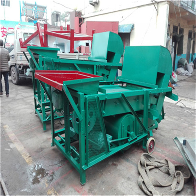 該清選機含有三層篩網,工作時先經過一層篩, 把原糧中比所需篩選物大的的雜質、葉子、泥塊等雜物分離出來,再經過二層篩網經好糧分離開,剩下三層篩網所篩物料即是比好糧小或碎的一些其他雜物。注:再好糧篩出過程中,經過機器本身自帶風機風選出比較輕的灰塵雜物,好糧由前端的出來口排出。