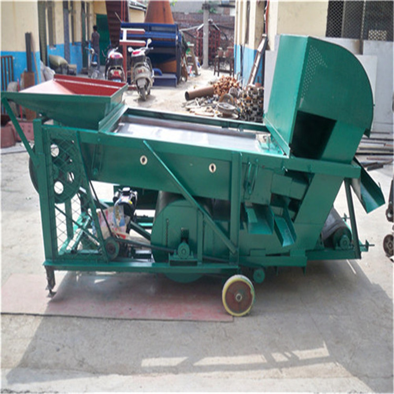本機為三層篩網,先經過進料口處風機抽風,直接抽走重量輕的雜葉或麥秸稈,上層篩的初次篩分再把大雜清理過,好的糧食(種子)直接落到下層篩網上,下層篩網會把糧食(種子)中的小雜.小石子.有缺陷的糧食(種子)直接漏掉,完好的糧食(種子)會從出料口篩分出來。該小型清糧機解決了揚場機的功能單一,不能有效去除石子.土塊的缺陷,更能為清理、凈選糧食(種子)帶來滿意的效果。該機有占地小,移動方便,便以維修,除塵除雜效率明顯,能耗低,使用簡便等優點。